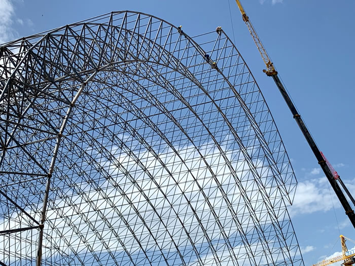 (2)网架加工前应对现场尺寸进行复测,确认无误后方可进行加工、安装;网架制作、运输、安装应遵守《空间网格结构技术规程》JGJ7-2010、《钢网架赤峰螺栓球节点》JG/T 10-2009、《钢网架赤峰螺栓球节点用高强度螺栓》 GB/T 16939-2016、《赤峰钢结构赤峰工程赤峰施工规范》 GB50755-2012、《赤峰钢结构赤峰工程施工质量验收标准》 GB50205-2020。